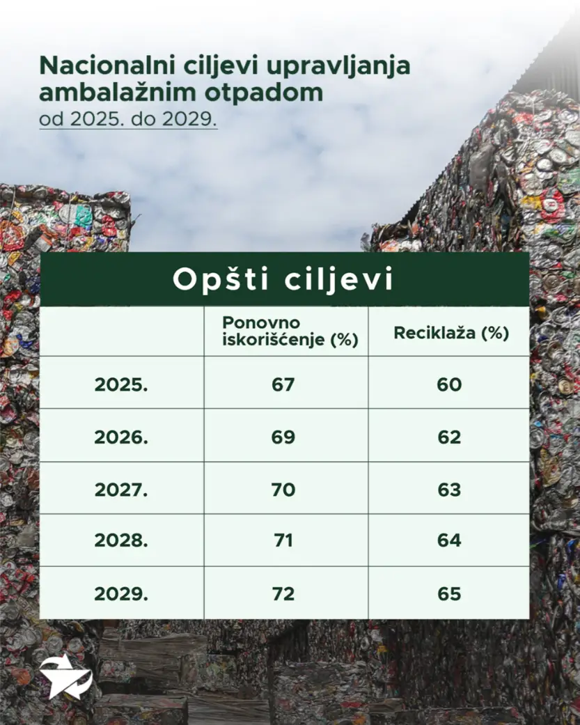 Pored ovoga, ciljevi Uredbe su povećanje stope reciklaže sa 60% (2025.) na 65% (2029.) i ponovnog iskorišćenja sa 67% (2025.) na 72% (2029.).